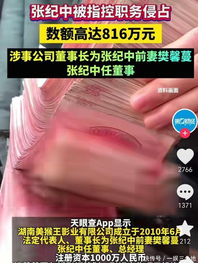编辑/小滨情感 11月5日人民新闻报道,近日湖南美猴王影业有限公司向北京经侦报案,指控张纪中涉嫌职务侵占。 数额高达800多万。 通过天眼查APP可以看到湖南美猴王影业有限公司成立于2010年6月,法定代表人,董事长均为张纪中前妻樊馨蔓!